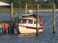 This was mostly a day of relaxation as well. Benton is known as "Gramps" to Rivers and Quinn, and they love coming to visit! Gramps and the kids fished off the pier, and the boys each caught a fish!. They loved it! After Colin and his family headed back to their home in Raleigh, we took Daydream out of the wet slip, again a rather challenging enterprise. Benton took his truck and trailer to a nearby ramp, and Ann rode with me on Daydream to guide me to the ramp from the water side. We got the boat on the trailer fairly easily, and took it back to the Blalocks' driveway.